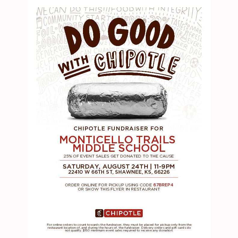Chipotle Restaurant Fundraiser TODAY! August 24th from 11am-9pm
